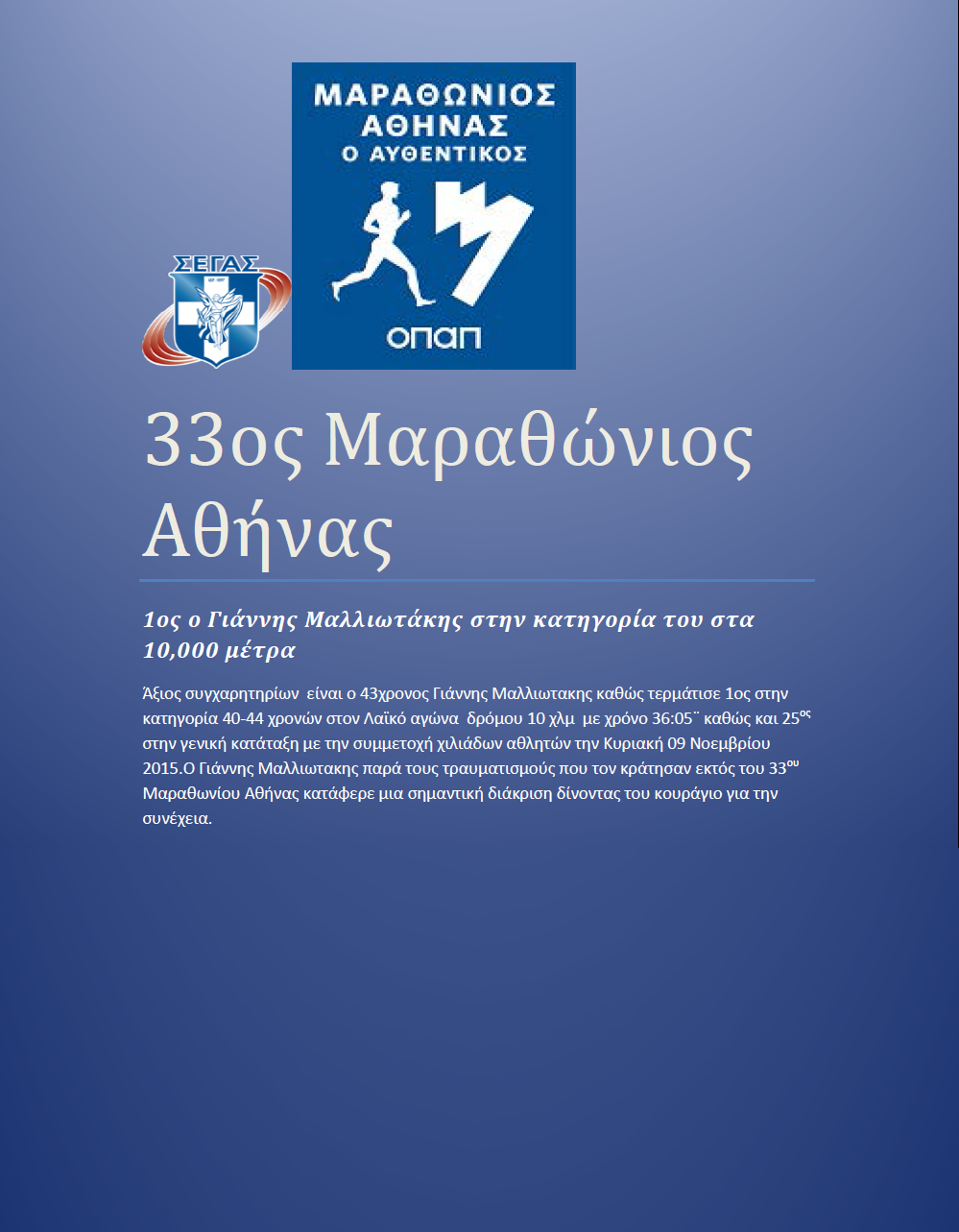 1ος στην κατηγορία του ο Γιάννης Μαλλιωτάκης στα 10χλμ.